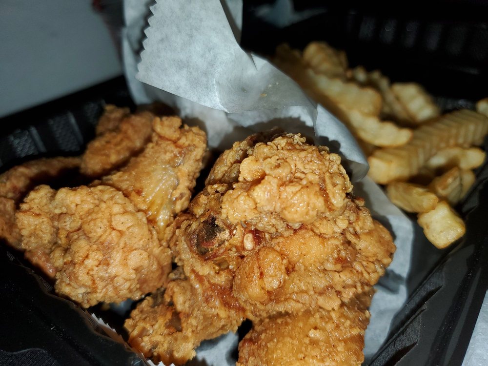 Char crispy fries with our Buffalo wing sauce. Served with celery and blue cheese